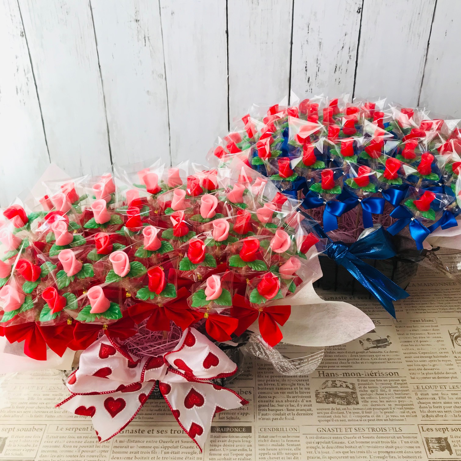 あめ細工 鶴藤では、ギフトにぴったりな飴細工のブーケを、creema(クリーマ)オンラインショップで販売しています。 www.creema.jp/c/tsurufuz/item/onsaleお好みの飴細工、本数でブーケに致します。ご相談ください。 …………………………………… ミニバラの飴細工のブーケです。 こちらはそれぞれ50本入りです。 バラの色やリボンによって雰囲気が変わります♫ バラの色も変更出来ますよ!お気軽にご相談ください!