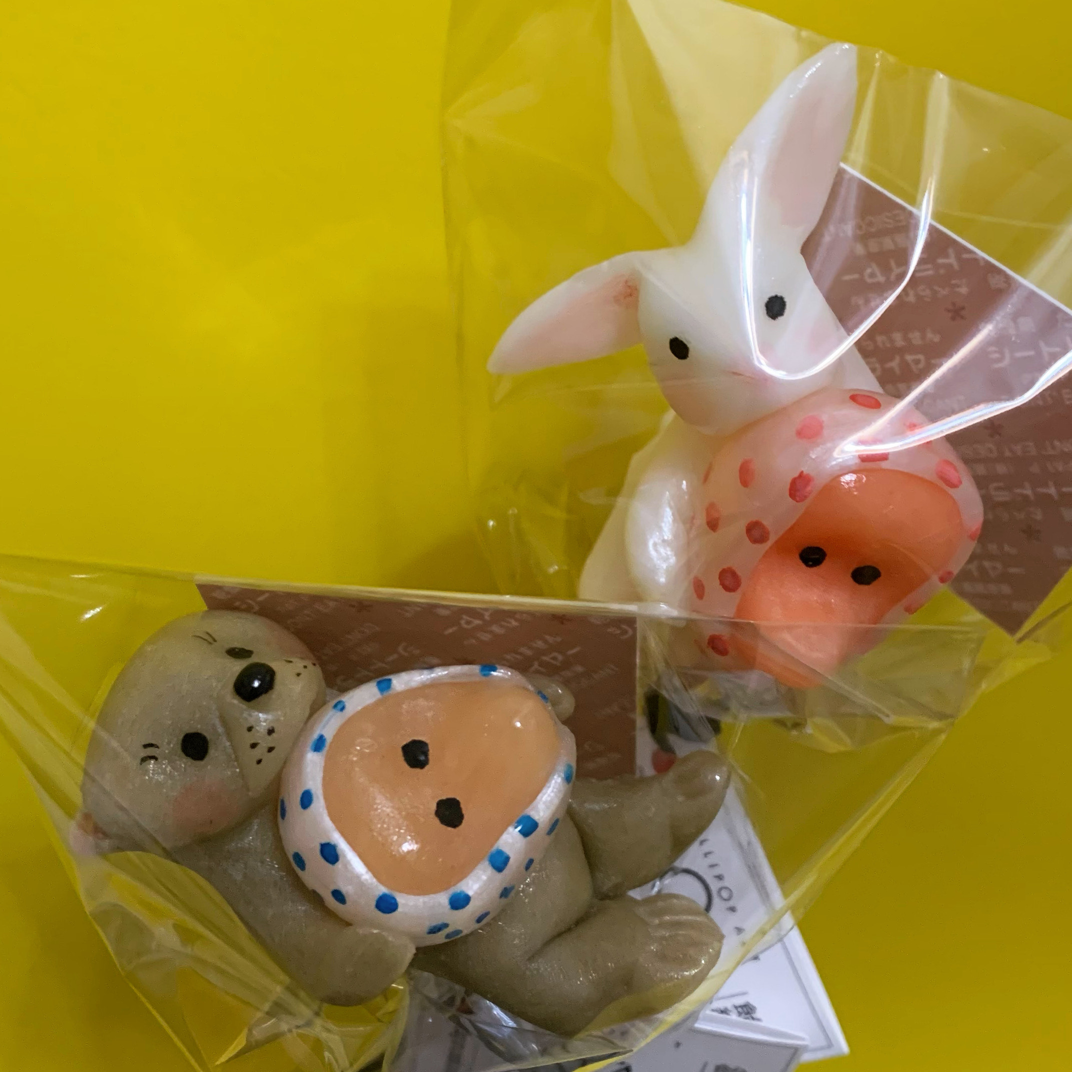 どじょう掬いまんじゅう単体の飴細工はもちろんのこと、動物達がどじょう掬いまんじゅうを抱きかかえているものまで。