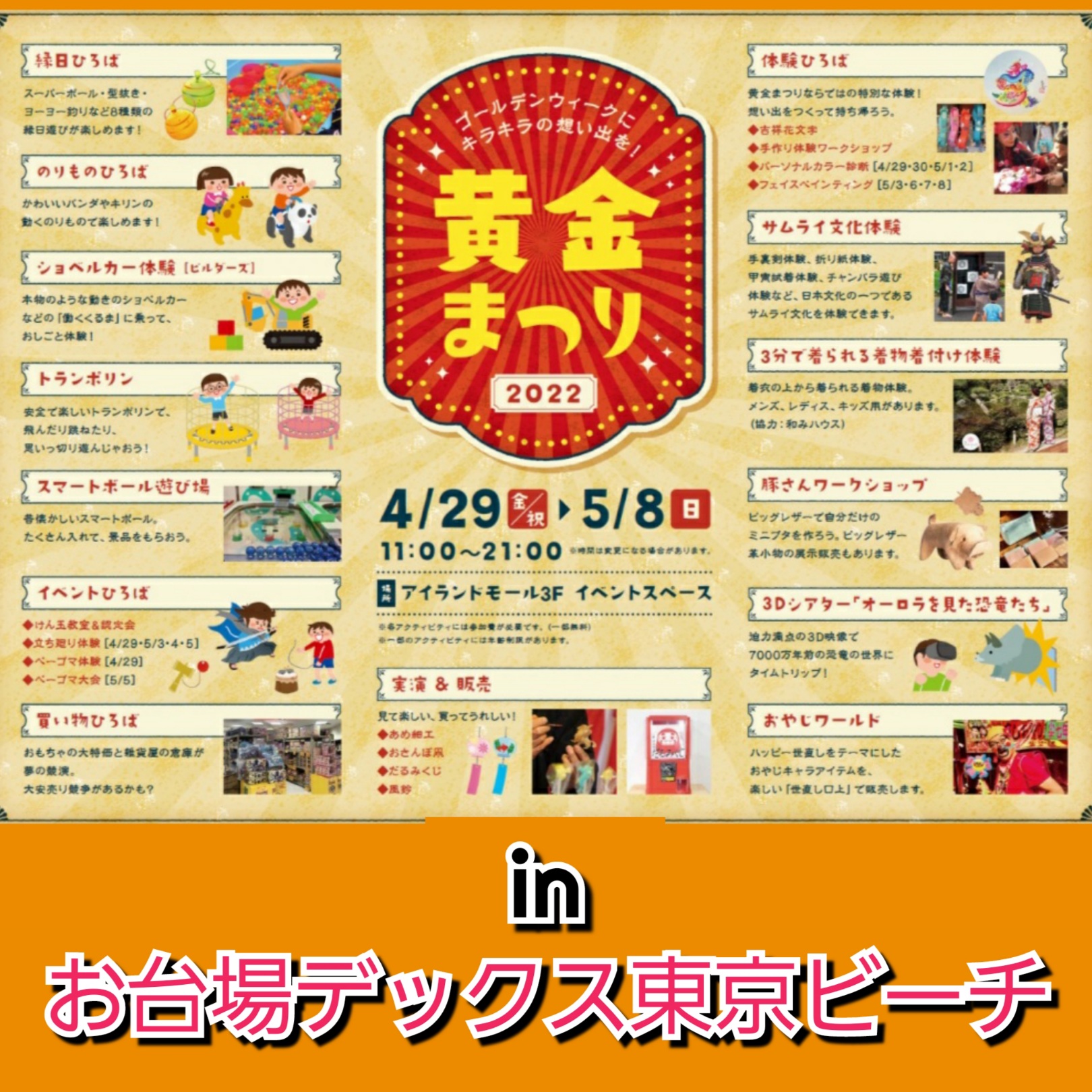 お台場デックス東京ビーチ「黄金まつり」で飴細工の実演をさせていただきます。