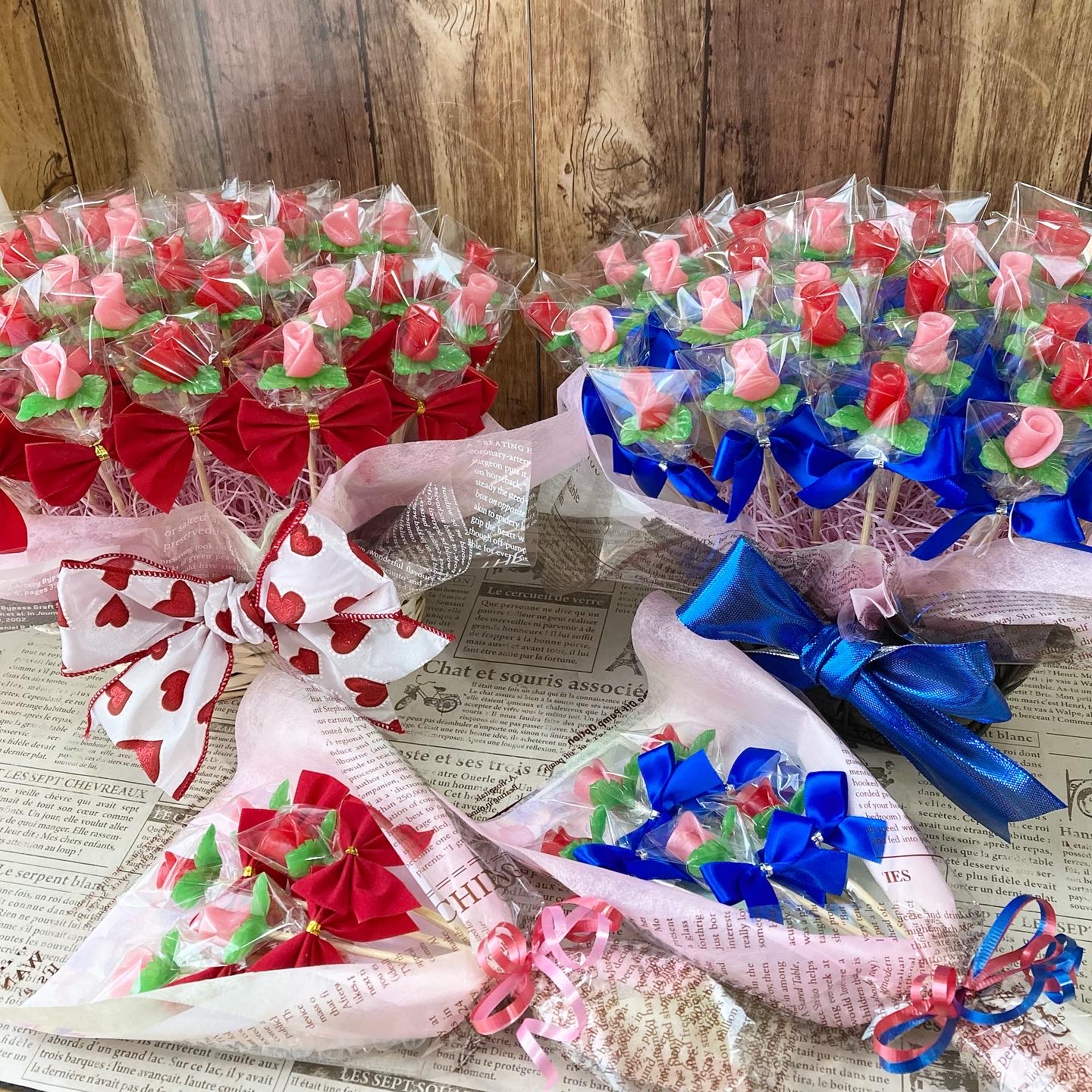 あめ細工 鶴藤では、ギフトにぴったりな飴細工のブーケを、creema(クリーマ)オンラインショップで販売しています。 www.creema.jp/c/tsurufuz/item/onsaleお好みの飴細工、本数でブーケに致します。ご相談ください。 …………………………………… 必要なブーケの薔薇の数が減ったとの事で、減らし分の薔薇はそのままでとのご注文。せっかくなので、減らした分でミニブーケを作ってみました。喜んでいただけたので良かったです!(^^)!