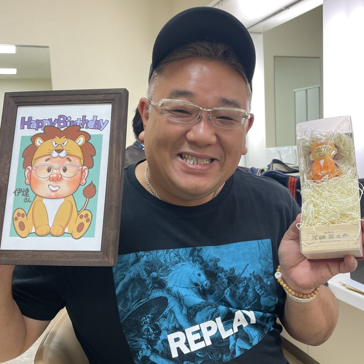 プレゼント用にサンドウィッチマン伊達さんの似顔絵の飴細工を作らせていただきました。
